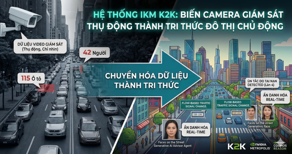 K2K định nghĩa lại camera giám sát thành Cơ sở hạ tầng tri thức. Thay vì mô hình nhận thức cũ (chỉ hỏi: “Có vật thể gì trong hình?”), hệ thống IKM (Intelligent Knowledge Management) chuyển sang mô hình diễn giải (hỏi: “Chuyện gì đang xảy ra, bối cảnh ra sao và cần hành động gì?”).