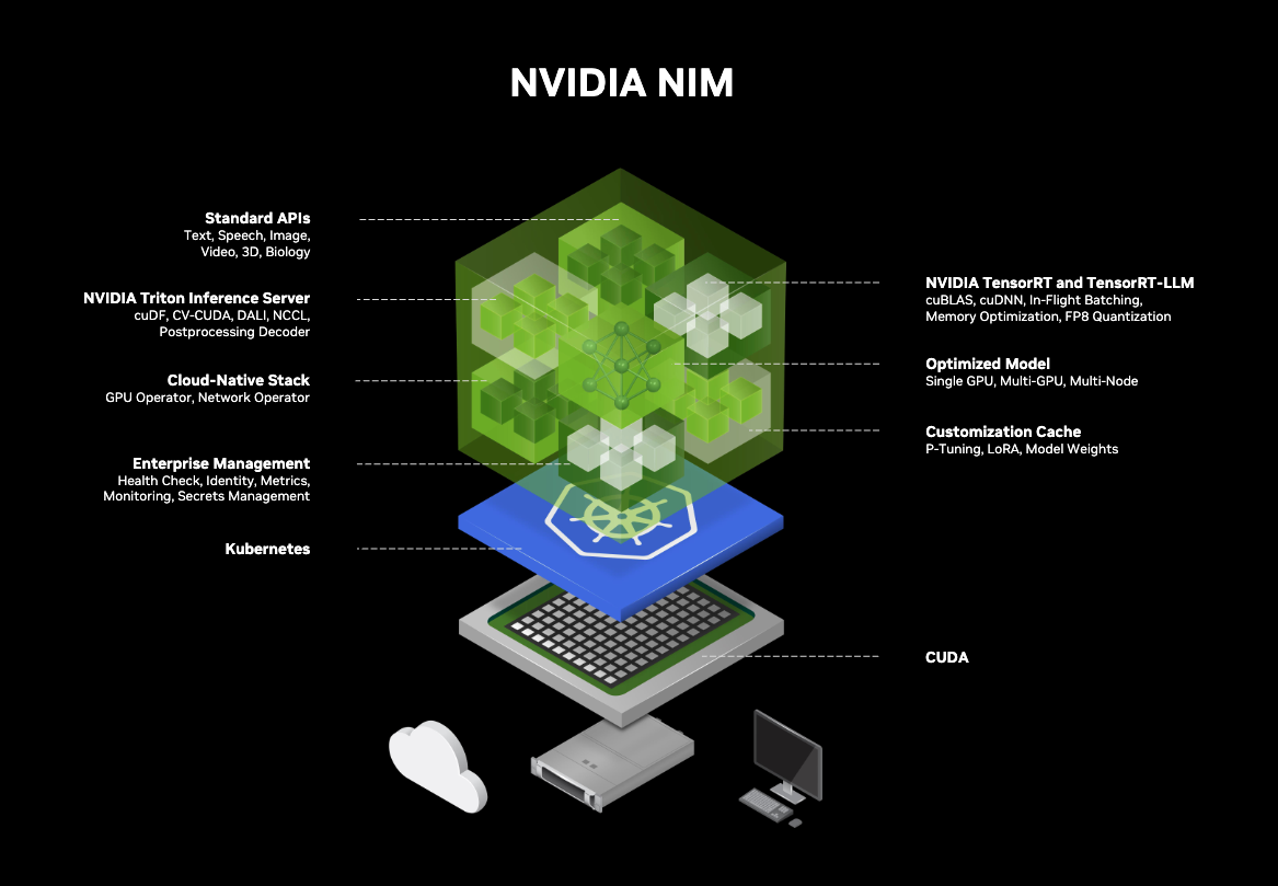 NVIDIA NIM: Vi dịch vụ suy luận tối ưu hóa cho triển khai mô hình AI quy mô lớn.