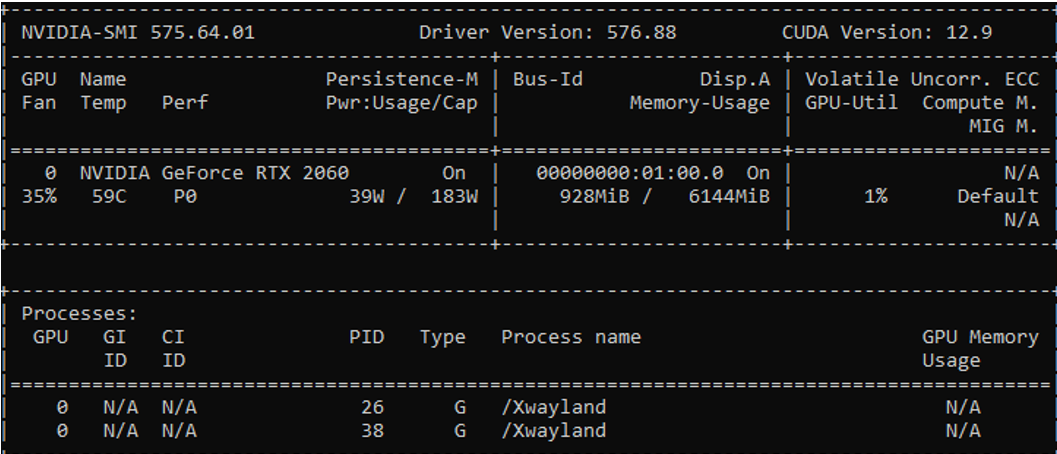 Cài đặt Driver NVIDIA tương thích và kiểm tra với lệnh: