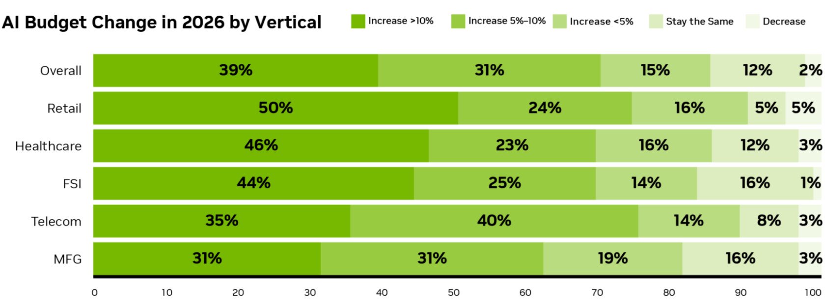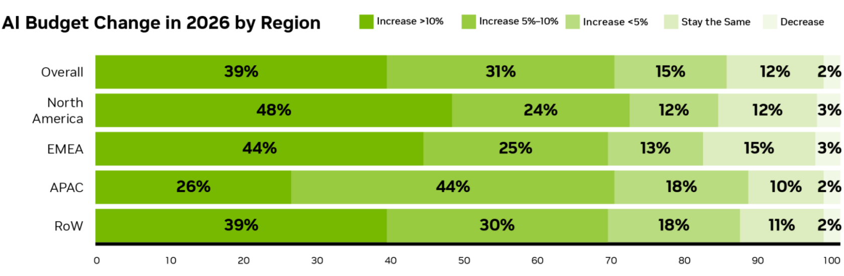 Gần như tất cả những người tham gia khảo sát năm nay đều cho biết ngân sách dành cho trí tuệ nhân tạo của họ sẽ tăng lên hoặc ít nhất là giữ nguyên trong năm 2026.