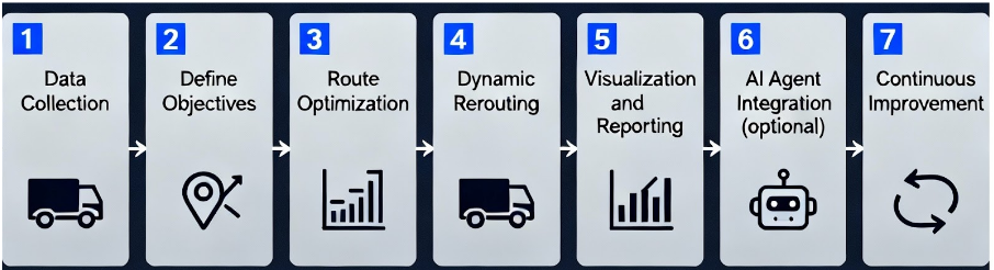 - Dữ liệu lịch sử: tuyến đường trước, thời gian giao hàng, mức tiêu thụ nhiên liệu.