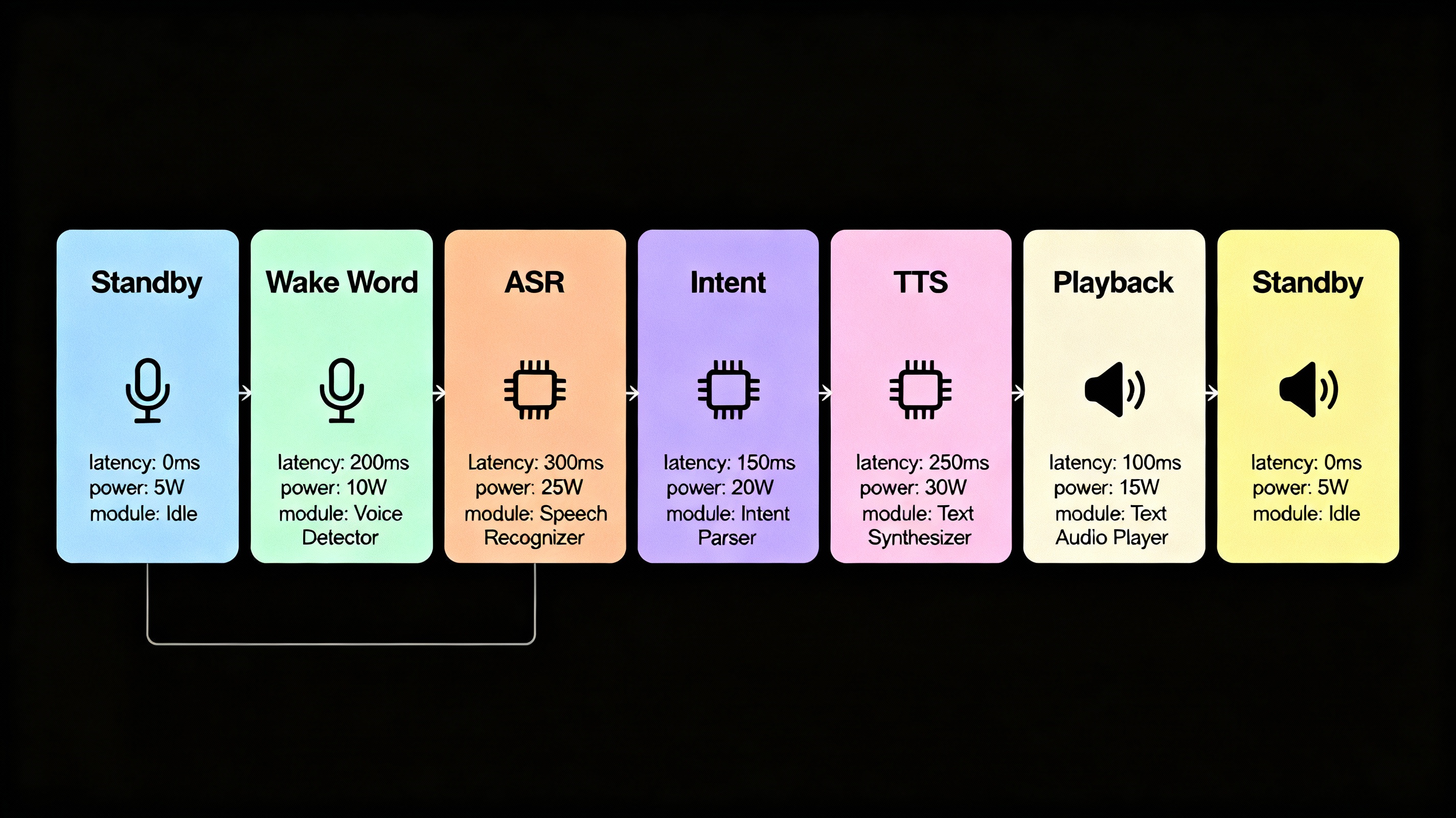 Tổng latency end-to-end: ASR (40–80ms) + LLM (20–50ms) + TTS (28–70ms) = 90–200ms